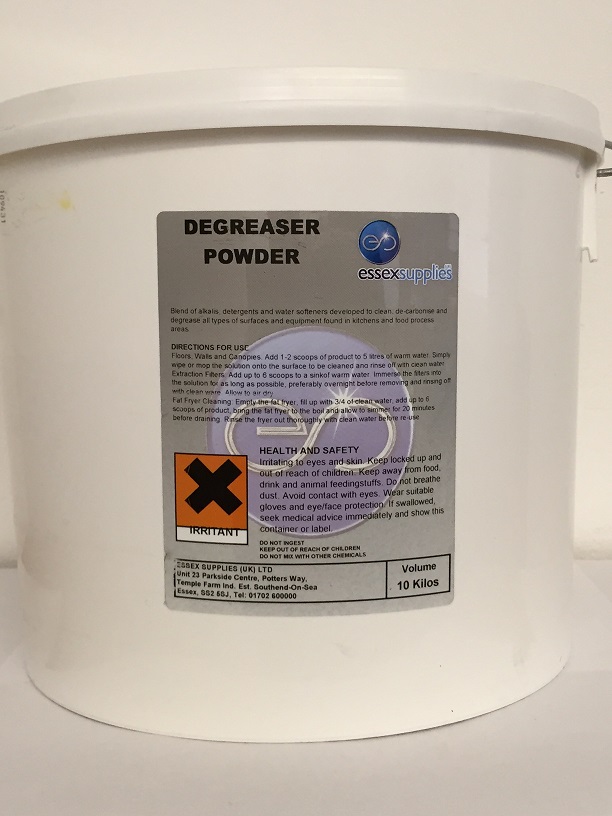 Essex Degreasing Powder is ideal for cleaning fat fryers, extraction filters, floors, walls and drains